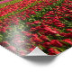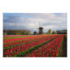 Impressão de fotografia de uma paisagem primavera com um campo com tulipas vermelhas e outras flores e um moinho de vento durante o nascer do sol nos jardins de Keukenhof, Região de Bulb, Países Baixos.