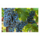 Uma imagem aproximada captura um aglomerado de uvas maduras, púrpuras-azuis penduradas numa vinha. As uvas são chupadas e suculentas, com uma textura ligeiramente felpudo. As folhas verdes esmagadas moldam as uvas, criando um vibrante contraste de cores. A imagem evoca o senso de abundância e a doçura da colheita.
