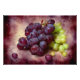 Clusters de uvas vermelhas e verdes. Gotas de água nas bagas. Fotografia texturizada, cores verdes e roxas. Impressões e presentes para diversão e bom humor.