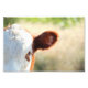 A arte apresenta uma vaca marrom em tons de cobre com uma face branca de neve e longos cílios brancos num prado brilhante e verde iluminado pelo sol. Arte original do Featherfall Studio.