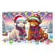 Vacas nas Terras Altas Férias na Terra das Maravilhas de inverno - Arte de Natal do estilo Manga com Chapéus e Escarpas Festivos Esta ilustração encantadora ao estilo de manga apresenta duas vacas nas Terras Altas — uma grande e pequena — vestida com chapéus e cachecóis festivos de inverno. Colocados em uma paisagem nevada, eles estão cercados por luzes coloridas de Natal e decorações de férias, criando uma cena de feriado confortável e animadora. Ideal para a decoração de Natal, esta trabalho de arte captura o espírito gentil da época com uma reviravolta única de vaca Highland.
