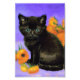 Impressão de fotografia com um gatinho Van Gogh preto! Este gatinho fofo está sentado ao lado dos girassóis em frente a um fundo roxo. Um presente maravilhoso para amantes de gatos e colecionadores de arte holandeses!