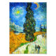 Foto Impressão com a pintura de óleo de Vincent van Gogh Road com Cypress e Star (1890), também conhecida como Country Road in Provence by Night. Pessoas caminham ao longo de uma estrada que passa por uma bela ciprestes sob um céu azul noturno com lua amarela e estrelas. Um presente fantástico para fãs de Impressionismo Poste e arte holandesa.