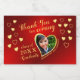 Crie elegante Agradeço as etiquetas de garrafas em vermelho e falsa ouro para favores de Festa de formatura de 2025 com um design único que apresenta uma foto em forma cardíaca, o nome do Formando e sobrenome e ano. Os modelos facilitam a digitação do seu nome de Formando e ano e o upload de uma imagem para ter a classe de favoritos 2025 (ou 2026, 2027, etc.)