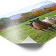 "Vermont Sheep in Autumn", por Catherine Sherman. Os ovinos estão a vestir os seus pesados casacos de lã no outono, prontos para o próximo inverno na região de norte Vermont, conhecida como o Reino Norte. Ao fundo, um lago glacial nas Montanhas Verdes é cercado por árvores em cores brilhantes do outono.