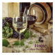 Lar é onde o vinho é ~ Foto muito rústica com óculos de vinho tinto e branco, uvas e um barril de vinho vintage para o consumidor de vinho.