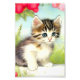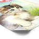 Impressão de fotografia com um gatinho branco e marrom giro! Este gatinho de olhos azuis fica na grama verde cercado por lindas flores rosa e vermelha. Um bom presente para amantes de gatos e entusiastas de arte vitorianos!