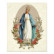 Apresentando uma bela e tradicional imagem religiosa católica da Virgem Abençoada Maria, Nossa Senhora de Graça com rosas vermelhas e um fundo local vintage.