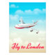 Voo para Londres Plane poster - poster de viagens britânico de cartoon de voo de um avião comercial no céu voando em direção a Londres, Inglaterra.