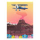 Um avião vintage azul prop voando baixo sobre um vulcão.