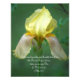 Foto original de uma bela flor amarela da íris. A flor é alta e orgulhosa à luz do rosto de Deus. Escritura de bíblia de 1rua Peter 5:6-7 nos lembra do amor de nosso Pai Celestial por nós.