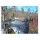 Esta é uma foto de uma lagoa úmida coberta de gelo logo após uma tempestade de neve. Está dentro de uma área conhecida como pínus. Era um dia ensolarado e um céu azul claro espia pelos ramos sem folhas das florestas. A neve mantinha a paisagem de inverno à medida que o sol reflete sobre a superfície congelada da lagoa úmida, criando uma terra maravilhosa de inverno. Um tronco de árvore apenas esquece no primeiro plano. As lagoas úmidas das Barrenes do Pinheiro de Nova Jersey são constituídas, em grande parte, por pequenas árvores e arbustos de diferentes espécies.