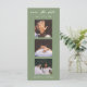 Um sábio minimalista moderno e um casamento em estilo strip-tease branca, guarde o anúncio de data. com espaço para 3 das suas fotos favoritas e código QR para o seu website de casamento.