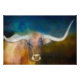 Uma vaca do Texas longhorn nesta fotografia original tem um fundo de azul lacrimogêneo e marrom-ferrugem. Fotografe o copyright Ann Powell de todos os direitos reservados.