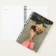 Planejador de conchas com texto personalizado na frente. Uma bonita concha de buccino listrada encontrada enquanto navegava num rio de água salgada da Flórida é a foto da frente, com outra foto na parte de trás com uma vista de uma praia isolada e concha na lama. Escolha o tamanho do planejador.