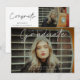 Este convite de formatura fotográfico moderno e elegante apresenta uma sobreposição de graduado em letra cursiva e nome, escola e foto personalizáveis na frente. O verso oferece parabéns e detalhes do evento com mais 2 fotos adicionais. Uma ótima maneira de mostrar seu graduado.