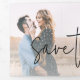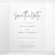 Capture a essência da sua história de amor com o nosso belo Casamento Personalizado de Foto Salve a Ficha de Datas com elegante tipografia de script. Este eterno e design personalizado serve como o prelúdio perfeito para o seu dia especial, permitindo que você compartilhe um vislumbre de sua alegria com os entes queridos. Esta opção salva a data apresenta uma saudação horizontal de fotos e scripts que abrange todo o fundo, fora desta placa tripla.