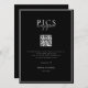 Elegante, Moderno, Escrita Manual, Negro, Casamento "Fotos acontecem!" Cartão com nome do Casal e data de casamento, incluindo código QR para Galeria de Fotos. Celebre seu amor e cumprimente seus hóspedes em estilo com nosso cartão de boas-vindas personalizado! Este cartão mínimo não é apenas uma decoração elegante para o seu casamento, mas também uma manutenção interativa que envolve os seus convidados. Tantas fotos são tiradas por convidados em um casamento que o casal frequentemente nunca consegue ver. Se você quiser criar uma galeria de fotos onde seus convidados possam carregar as fotos que tiraram, este Cartão é perfeito para você. Há muitos provedores, como o Dropbox, onde você pode criar uma galeria on-line gratuita antecipadamente. Em seguida, você pode personalizar facilmente seu Cartão digitando seu nome, data e link para sua galeria de fotos. Assim, você tem algo realmente especial para seu grande dia.