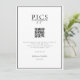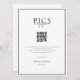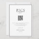 Elegante, Moderno, Escrita Manual, Branco, Casamento "Fotos acontecem!" Cartão com nome do Casal e data de casamento, incluindo código QR para Galeria de Fotos. Celebre seu amor e cumprimente seus hóspedes em estilo com nosso cartão de boas-vindas personalizado! Este cartão mínimo não é apenas uma decoração elegante para o seu casamento, mas também uma manutenção interativa que envolve os seus convidados. Tantas fotos são tiradas por convidados em um casamento que o casal frequentemente nunca consegue ver. Se você quiser criar uma galeria de fotos onde seus convidados possam carregar as fotos que tiraram, este Cartão é perfeito para você. Há muitos provedores, como o Dropbox, onde você pode criar uma galeria on-line gratuita antecipadamente. Em seguida, você pode personalizar facilmente seu Cartão digitando seu nome, data e link para sua galeria de fotos. Assim, você tem algo realmente especial para seu grande dia.
