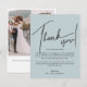Cartão de agradecimento de casamento com caligrafia moderna e mensagem personalizada. 3 fotos no verso.
