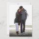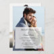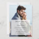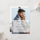 Este simples convite de casamento apresenta 2 fotos verticais de sangramento de cheio, uma na frente e outra no verso. O texto aparece em uma caixa branca transparente na frente sobre o topo da foto. O backside oferece texto personalizado para informações de RSVP.