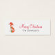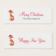 Um cartão de visita magro com uma ilustração fofa cor de laranja. Ele está vestindo um chapéu de anã vermelho e tem sotaques decorativos verdes festivos na cauda e no peito. Personalize com seu nome. Feliz Natal e Feliz ano novo escritos na frente e atrás. O texto pode ser personalizado para atender às suas necessidades.