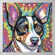 Um poster de quadrado colorido e balbucioso de um terror de raposa.