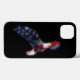 Patriotic iPhone 6 Case with fractalized Bald Eagle in flight at night with American Flag overlay. The eagles feathers appear to be the Red White and Blue Stars and Stripes of the flag.
