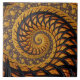 Este produto apresenta uma arte fractal espiral abstrato geométrica em tons pretos e dourados.