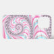 Este belo gabinete iPhone 13 apresenta um design fractal espiral abstrato em azul pastel, rosa e branco. Reflexão leve e sombras fazem com que pareça tridimensional.
