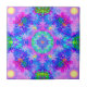 um teste padrão psicadélico do fractal do caleidoscópio do estilo do hippy em roxo, em verde, em azul, em cor-de-rosa e em amarelo.