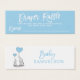 Adoráveis passagens de rifle azul e branca modernas em moderno roteiro de pincel em azul-pastel claro. Mamãe e elefante bebê em cinzas com balões cardíacos. Personalize-os acrescentando o nome do bebê. Adicione-os aos seus convites, preço barato pela quantidade 100, tamanho perfeito 3"x1". Perfeito para qualquer tema de festa de chá de fraldas de bebê. Corresponde a qualquer matiz de esquema de cor azul.
