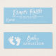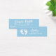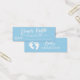 Adoráveis passagens de rifle azul e branca modernas em moderno roteiro de pincel em azul-pastel claro. Pés bonitos de bebês - Personalize-os por ter adicionado o nome do bebê. Adicione-os aos seus convites, preço barato pela quantidade 100, tamanho perfeito 3"x 1". Perfeito para qualquer tema de festa de chá de fraldas de bebê. Corresponde a qualquer matiz de esquema de cor azul.