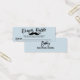 Adorável e moderno e editável bilhetes de riachos de fralda azul-claro e preto, em moderno roteiro de pincel com bigode. Personalize-os acrescentando o nome do bebê. Adicione-os aos seus convites, preço barato pela quantidade 100, tamanho perfeito 3"x1". Excelente para o tema da festa do chá de fraldas do garoto. Corresponde a qualquer tema de cor ou matiz de esquema.