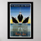 Poster de linha na moda francês super bem, mostrando dramática ilustração de arco de um trio de liners.