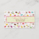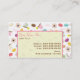 Um cartão de visita que caracteriza um design que consiste em macarons franceses em várias cores, rosa, verde, e teacups bege, flores cor-de-rosa da anêmona, e texto de "Bonjour" no rosa e no marrom. Personalize o texto na parte dianteira e na parte traseira com sua informação.