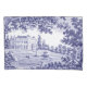 Uma estante com uma linda cena de jardim de safra, em toile azul.