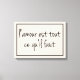 Francês simples e elegante Tudo que você precisa é Canvas de Impressão de de Amor. Perfeito para qualquer Francófilo, este adorável design de tipografia temida parisiense lê "I'amour est tout ce que'il faut" o que significa que tudo que você precisa é de amor em francês. Uma simples borda preta enquadra o texto. A cor de fundo pode ser alterada para corresponder a qualquer decoração.