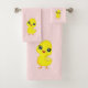 Desenho de Frango Fofo em conjunto de Toalhas rosa claro.