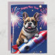 hübsche französische Bulldogge feiert Sylvester und wünscht ein Frohes Neues Jahr. Das bunte Feuerwerk in der Nacht wirkt sehr festlich.Der lustige kleine Hund hat einen traumhaften Abend mit Freunden und Familie. Der niedliche Frenchie sitzt auf einer Rakete und startet ins neue Jahr. Jetzt wird gefeiert und um 12 Uhr Mitternacht wird mit Sekt angestoßen. Traumhafte Illustrationen und ein schönes Geschenk für jeden Hundebesitzer.