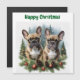 Zwei niedliche Französische Bulldoggen wünschen Frohe Weihnachten und liegen im Weihnachtskranz. Alles ist festlich geschmückt mit Kugel Lichter und Lametta. Die Doggen fühlen sich wohl in der Weihnachtlichen Umgebung.