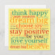 Colorida Positividade para enviar a alguém com este padrão de Arte do Word frases inspiradoras em multicores de vermelho, amarelo, laranja, teal e roxo com as citações motivacionais, Acreditem, Escolham a alegria, Pensem felizes, Sonhem Grandes, Fiquem Positivos, Apaixonem-se e Sejam Vocês, num fundo amarelo.