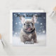Imaginem um belo cartão de saudação que desdobra a magia da época de férias. A frente do cartão mostra uma imagem emocionante: um filhote de cachorro Bulldog francês animado brincando alegremente em uma terra maravilhosa de neve. A cena é enfeitada com a alegria infecciosa do filhote, cercada por flocos de neve delicados, criando um retrato perfeito de alegria festiva. Na parte superior do cartão, há uma área de texto personalizável onde você pode adicionar seu toque pessoal. Isto permite-vos adaptar a saudação à ocasião, seja um desejo de Natal, uma saudação de Ano Novo, ou qualquer outro sentimento festivo que queiram expressar. Agora, vire o cartão para revelar uma mensagem personalizada no verso. Esta placa de saudação completa torna-se uma forma única e ponderada de compartilhar alegria de feriado, com os elementos personalizáveis que permitem que você a adapte para um toque especial.