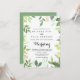 Este convite de casamento botânico verde e de volta é perfeito para um casamento simples. Esta bela design de aquarela apresenta folhagem verde botânica. Salve o papel, incluindo mais detalhes na parte traseira do convite em vez de em uma placa de gabinete separada.