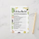 Fresco do mercado que conhece o melhor jogo | Divertido Casal por meio da atividade do Chá de panela Coloque o conhecimento dos seus convidados sobre o feliz casal para o teste com nosso "Fresco no Mercado" que os conhece o melhor jogo! Este jogo engajado e divertido é uma adição perfeita ao mercado, jardim ou chá de panela de temas rústicos de seus agricultores. Com os nossos produtos desenhados à mão e os deliciosos florais de aquarelas, ele complementa lindamente a sua estética natural e fresca. Aqui está como jogar: Antes do chá, crie uma lista de perguntas sobre a noiva e o noivo/parceiro (por exemplo, "Onde eles se conheceram pela primeira vez?", "Quem disse 'Eu te amo' primeiro?", "Qual é a atividade favorita deles no final de semana?", "Qual é o talento escondido do noivo?"). No chá, os hóspedes enchem este cartão de jogo com suas respostas para ver como eles conhecem bem o casal como uma unidade. O convidado com as respostas mais corretas ganha um prêmio! É uma maneira fantástica de celebrar a jornada do casal juntos e revelar fatos divertidos sobre eles. O cartão de jogo "Who Knows Best" fornece uma lista clara de perguntas e espaço para os hóspedes escreverem suas respostas em um design de temas atrativo. É uma atividade fácil de distribuir nas mesas e encoraja os convidados a pensar sobre ambos os indivíduos no relacionamento. Coordene este divertido jogo de adivinhação perfeitamente com outros itens da nossa coleção "Fresco do Mercado", como convites, outros cartões de jogo e cartazes, para um tema de evento belamente coeso e divertido. Personalize facilmente o cartão de jogo adicionando os nomes dos casais, a data do evento e adaptando as perguntas para serem específicas e interessantes para a noiva e o noivo (dependendo dos recursos de modelo do Zazzle). Disponível impresso em cartolina de qualidade premium ou como um download digital conveniente para o impressão em casa. Clique em "Personalizar agora" para personalizar o seu novo fora do mercado que conhece os melhores cartões de jogo e adiciona um toque de trivialidade e diversão ao seu chá de panela, celebrando o vínculo exclusivo do casal! que os conhece melhor jogo, jogo do chá de panela, novo jogo fora do mercado, atividade de noiva do mercado, jogos de casamento rústicos, jogos de conhecimento imprescindíveis, como conhecer casal, jogos de fatos divertidos, cartão de chá floral