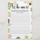 Fresco do mercado que sou eu jogo | Atividade de quebra-gelos do Chá de panela divertido Ajude seus hóspedes a se misturarem e se conectarem com o nosso jogo de Chá de panela "Fresco do Mercado" que sou eu! Este quebra-gelo interativo é uma adição perfeita para o mercado de fazendeiros, jardins ou chás de panela temáticos rústicos. Com os nossos produtos desenhados à mão e os deliciosos florais de aquarelas, ele complementa lindamente a sua estética natural e fresca. Aqui está como jogar: os convidados recebem um cartão de jogo e pediram para anotar um fato sobre eles mesmos ou sobre sua relação com a noiva sem escrevendo o nome deles. As cartas são coletadas, e o host lê cada fato em voz alta. Os convidados então adivinhem quem escreveu qual é o fato! É uma forma fantástica de os hóspedes aprenderem mais uns sobre os outros e encontrarem conexões dentro do grupo, especialmente quando nem todos se conhecem bem. O cartão de jogo "Quem sou eu" proporciona espaço para os hóspedes escreverem o seu fato anônimo num design atraente, temático. É uma atividade fácil de configurar e fornece encorajamento gentil para os convidados interagirem e aprenderem detalhes divertidos sobre os outros. Coordene este jogo envolvente com outros itens da nossa coleção "Fresco do Mercado", como convites, outros cartões de jogo e cartazes, para um tema de evento belamente coeso e divertido. Personalize facilmente o cartão de jogo adicionando o nome da noiva, a data do evento ou fornecendo um aviso específico para o fato que os convidados devem compartilhar (por exemplo, "Minha memória favorita com a noiva é..."). Disponível impresso em estoque de cartão premium ou como um conveniente download digital impressão in-home. Clique em "Personalizar agora" para personalizar o seu jogo Fresco do Mercado, que sou eu, e adicionar um toque de mistério e diversão ao seu chá de panela! que sou eu jogo de noiva, chá de panela quebra-gelo, jogo novo fora do mercado, atividade de noivas no mercado, jogo de casamento rústico, jogo de festas de jardim, imprimível, conhecer você jogar, fatos divertidos, jogo de chá, cartão de chá floral