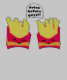 Dois cartoons fritas estão sorrindo, com um deles dizendo, "Fries antes das caras!!". A design colorida e brincalhona adiciona uma mensagem humorística e alegre.