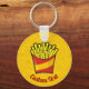 Ilustração de desenho animado de um pequeno pacote de batatas fritas. Fundo de comida rápida amarelo sem aspecto. Texto personalizado de ambos os lados.