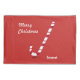 Fronha de almofada com um caráter feliz e sorrindo do bastão de doces. O artigo mostra as palavras "Feliz Natal" e um nome personalizable.