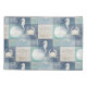 As imagens temáticos da praia e do mar do vintage rendidas no branco e no bege de creme são arranjadas em um fundo velho do conselho de madeira com aqua matizado quadrados, um profundo e claro - azul, e brandamente branco. As imagens no creme e o branco representado são um caranguejo, escudos fracos do mar, dólar de areia, cavalo de mar e duas gaivota de mar crescentes junto com as palavras "a praia são meu lugar feliz". Os artigos de harmonização e o outro design temático da praia e do mar estão disponíveis em minha loja de Zazzle.